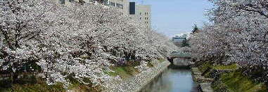 ![]() Cherry Trees in Full Bloom on the Bank of the Matsukawa River flowing through Toyama City |
